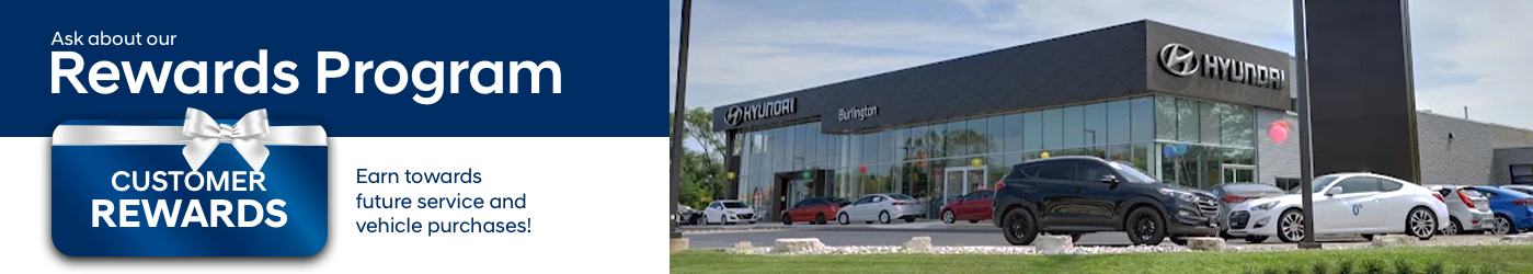 Welcome to the Burlington Hyundai Rewards Program! Buy here. Service here. It pays to come back to Burlington Hyundai. Let us show you how.